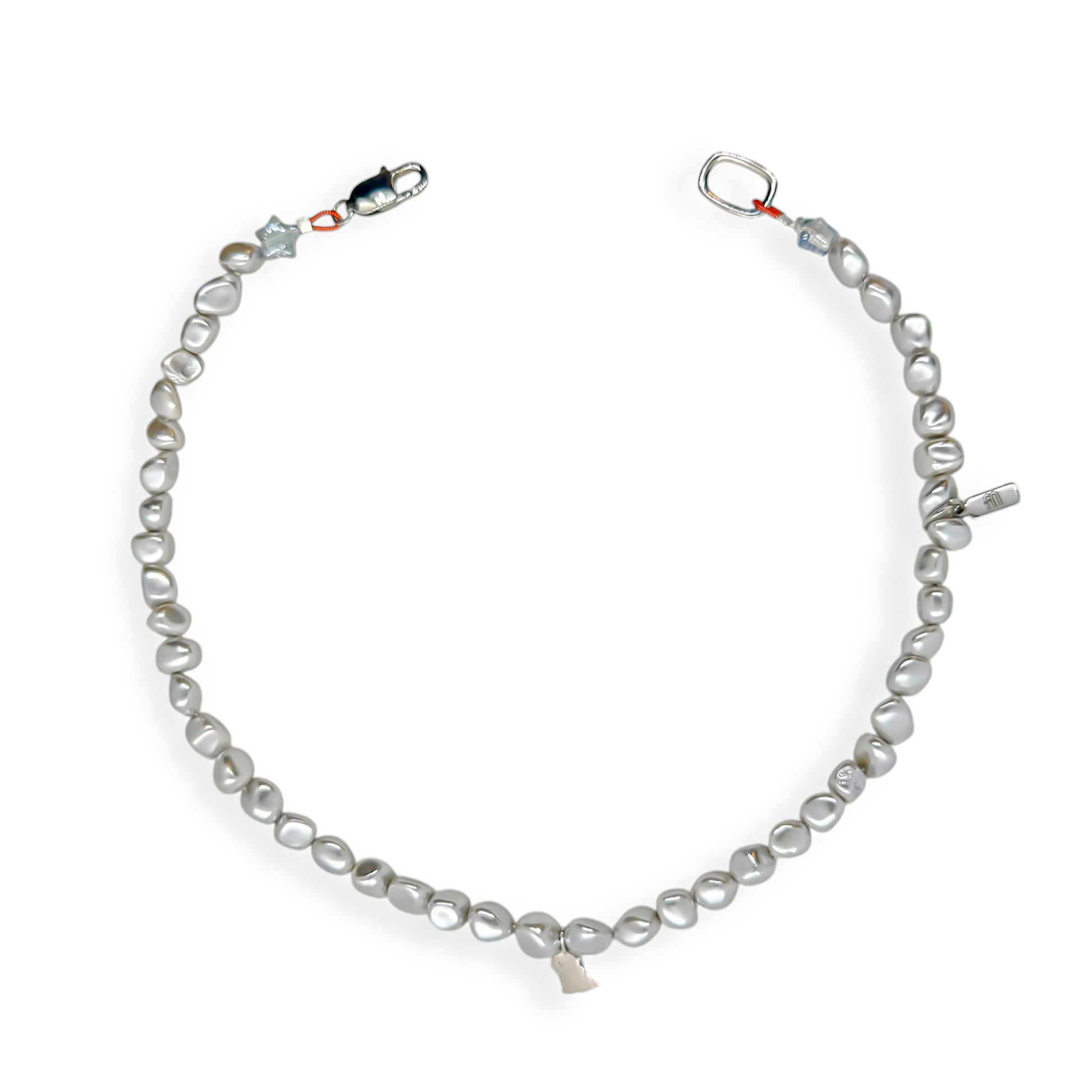 Materialen: Natuurlijke parelmoer, sterling zilveren bedel, roestvrijstalen onderdelen