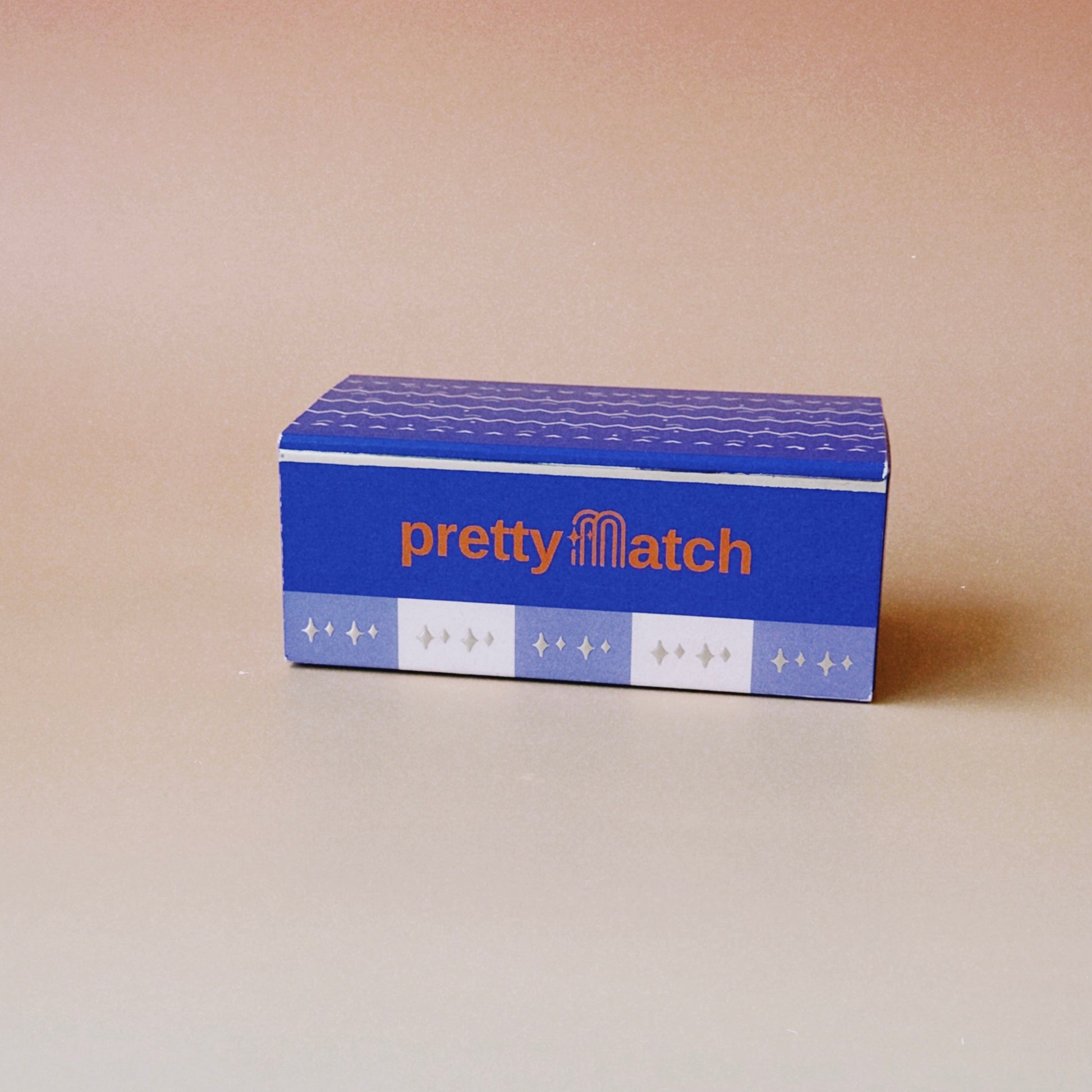 Your jewelry comes in a signature Pretty Match box with silver foil details, wrapped in soft tissue paper and tied with a branded ribbon.