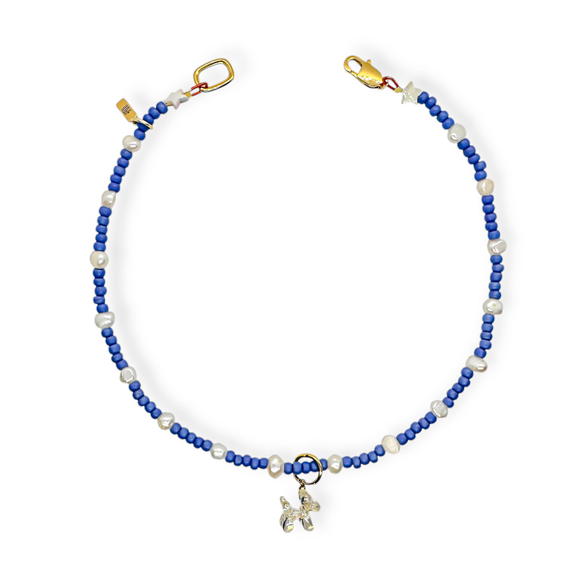 Add a playful yet stylish accent to your look with the Denim Pup Necklace. Featuring deep denim-blue beads and delicate freshwater pearls, this piece perfectly balances casual elegance with a fun twist. The clear balloon dog charm gives it a modern, airy feel, making it a subtle yet unique statement.